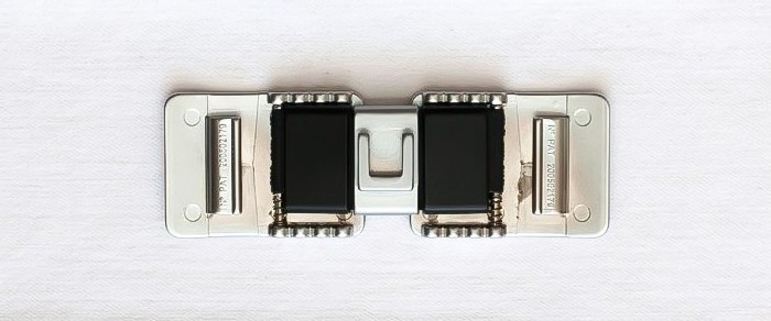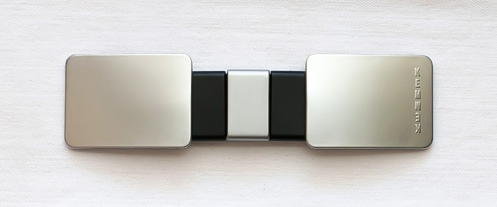 Este Kemwek, de la colección Metal, está compuesto por dos Kem (hebillas laterales) cortos de metal color plata y un Wek (cuerpo central) con los pasadores laterales negros y el central (Indomitun) de metal color plata.