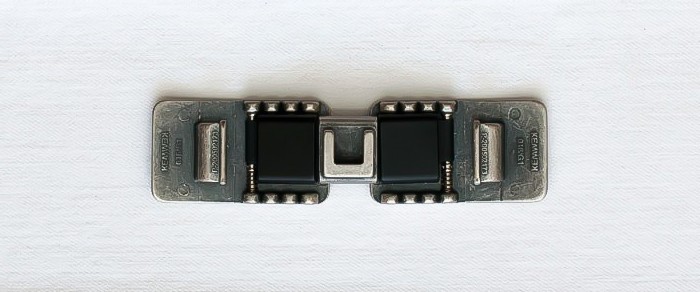 Este Kemwek, de la colección Metal, está compuesto por dos Kem (hebillas laterales) mini de metal color plata vieja y un Wek (cuerpo central) con los pasadores laterales negros y el central (Indomitun) de metal color plata vieja.