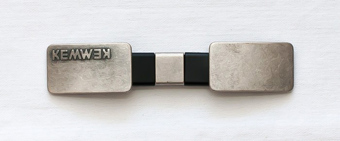 Cada Kem tiene un tamaño de 6 cm x 3,5 cm y un peso aproximado de 140 gramos. Están provistos en su parte posterior de dos pestañas que se enganchan a las trabillas de la prenda y de cuatro posiciones de regulación para graduar la longitud del Kemwek.